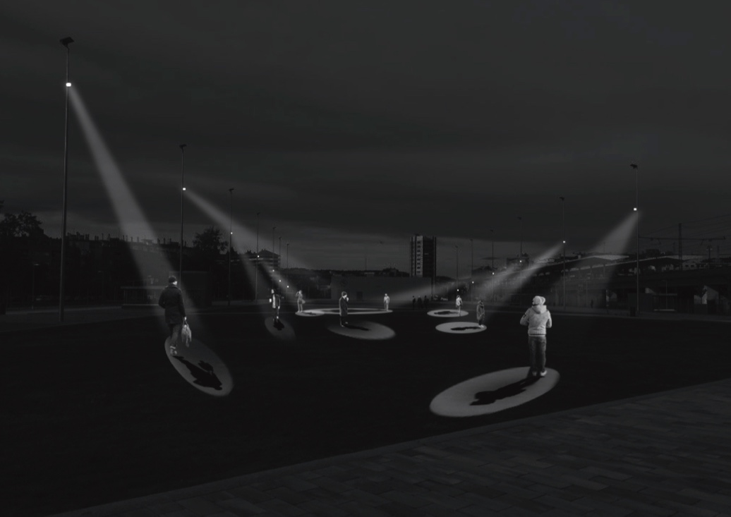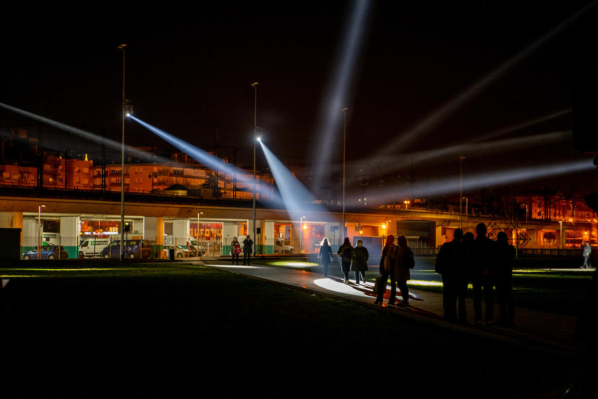 Chased is a participatory experience that transforms the citizen into the absolute protagonist of the installation. The project reflects on the concept of «stardom» in the digital age: in a world where humans constantly seek the spotlight, what happens when it is the spotlight itself that chases us?